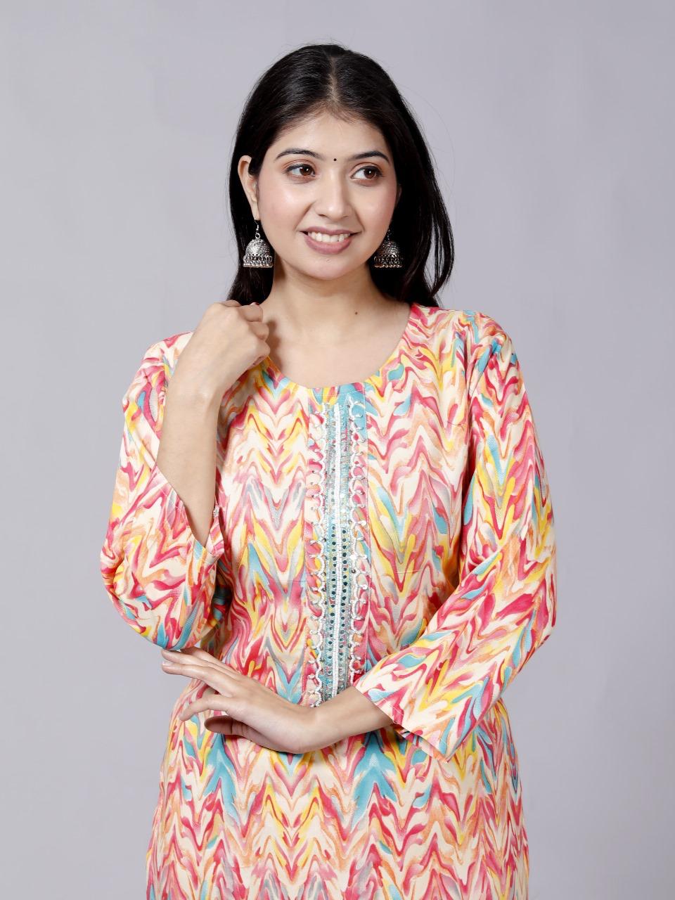 A stylish blend of comfort and elegance, perfect for casual and festive occasions. Beautifully designed with intricate detailing to enhance your traditional look. Flowy, breathable fabric for all-day comfort with a chic, modern touch. Versatile outfits that effortlessly combine ethnic charm with contemporary style. Perfect for celebrations, family gatherings, or a graceful everyday look.